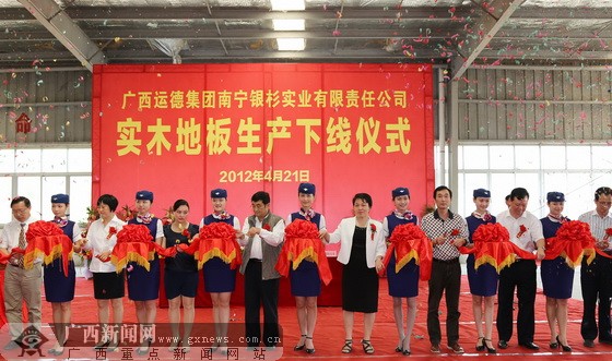 ​The new "Yinshan" environmentally friendly solid wood flooring was put into production in Yunde, Guangxi. Distributors and other guests visited the "Yinshan" environmentally friendly solid wood flooring production plant (the equipment in the picture is our company's equipment). Imported logs from the Amazon River Basin in Brazil